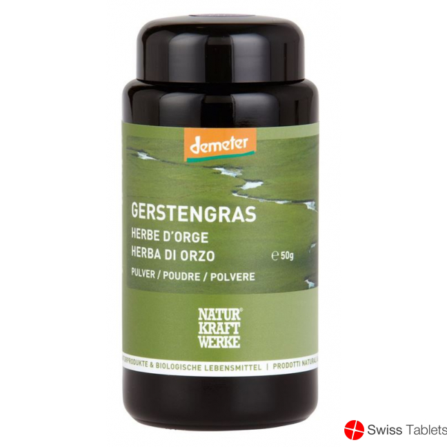 Naturkraftwerke 50 g Barley Grass Powder Demeter is a natural dietary supplement made from high-quality barley grass cultivated according to Demeter biodynamic standards. This finely milled powder offers a convenient way to incorporate the nutritional benefits of barley grass into your daily routine. Known for its rich content of vitamins, minerals, and antioxidants, barley grass powder supports overall wellness and vitality.